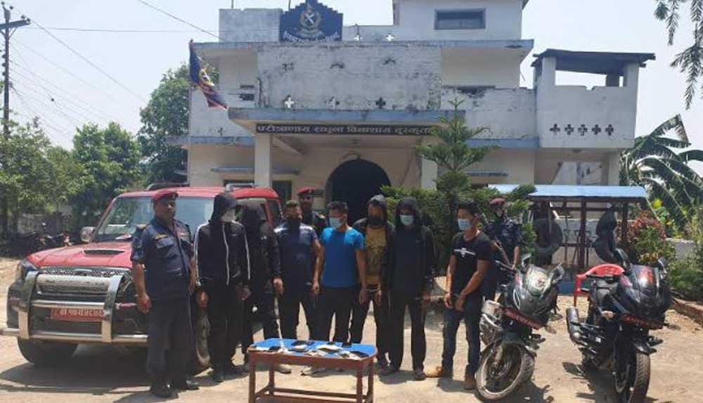 पक्राउ पर्नेमा सिन्धुली मरिन घर भई हाल निजगढ नगरपालिका ८ बस्ने २६ वर्षीय संघर्ष थिङ, सर्लाही हरिवन नगरपालिका ८ का २४ वर्षीय विजय लामा, सिन्धुली हरिहरपुर गाउँपालिका ७ का ३६ वर्षीय टाइगर भनिने सुनिल तामाङ, रौतहट गजुरामाई नगरपालिका २ का ३४ वर्षीय ज्ञानबहादुर थिङ, काभ्रे महाभारत गाउँपालिका २ का ३० वर्षीय विशाल पाख्रिन, महोत्तरी बागडा ५ घरभइ हाल बर्दिबास नगरपालिका ११ मा बस्ने २१ वर्षीय सन्तोष भनिने रमेशकुमार यादव र सर्लाही हरिवन नगरपालिका १० का २७ वर्षीय दिलकुमार दोङ रहेका छन् । दोङ बस लुटपाटमा प्रयोग गरिएको बा १७ च ४८७६ नम्बरको स्कोरपियो गाडीका चालक हुन्।