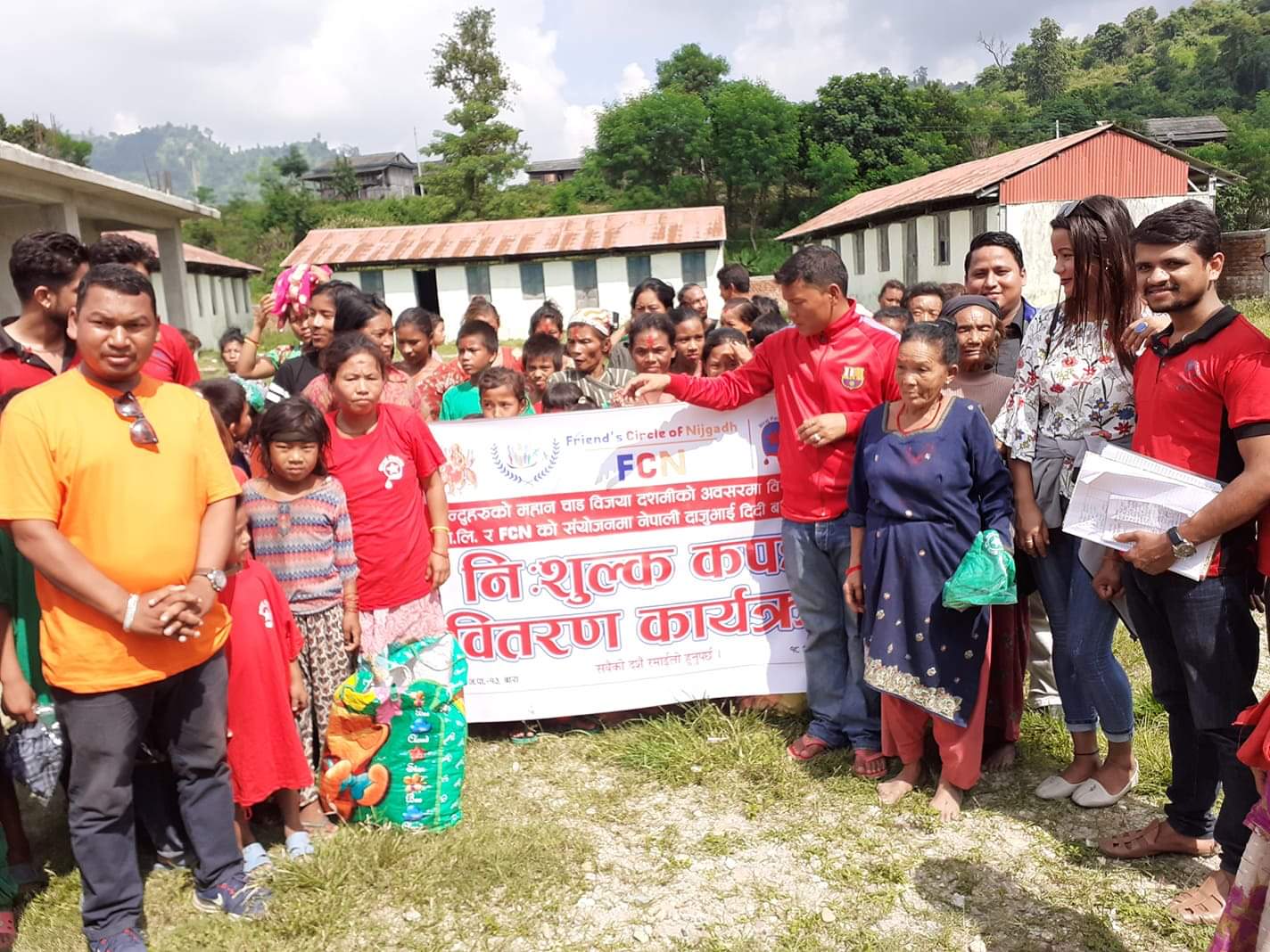 फ्रेन्स सर्कल अफ निजगढ (FCN)ले दसैको उपलक्ष्यमा चेपाङ्जातिलाई कपडा बितरण गरेको छ।कार्यक्रममा निजगढ १३ डम्बरपुरको पानीसाराको विभिन्न डाडामा बसोबास गर्ने चेपाङ समुदायको करिव १५० सदस्य लाई कपडा बितरण गरेको थियो।बिराज पेन्ट्सको आर्थिक सहयोग र FCN को सहकार्यमा सो कार्यक्रम सम्पन्न भएको हो।कार्यक्रम मा युवा समाज सेबि एवम नेकपाका युवा नेता तिलक घलानले प्रदेश न २ को लोपौन्मुख जाती रहेकोले यसजातिको स्थानी सरकार,प्रदेस सरकार र केन्द्रिय सरकारले यो जातिको संरक्षण गर्नु पर्ने र यो जातिको भेष भुषा पहिचाह समेत छुट्टै रहेकोले सबैमिलेर सहयोग गर्नु पर्ने कुरामा घलानले जोड दिनु बताउनु भयो।कार्यक्रममा बिराज पेन्ट्सका मारकेटिङ मेनेजरको प्रमुख अतिथी रहेको कार्यक्रम मा आफुले यसरी यो जातिलाई सहयोग गर्न पाउँदा सारै खुसी लागेको र आगामी दिनमा पनि गर्ने कुरा राख्नु भएको थियो भने कार्यक्रमको अध्यक्षता अनिष पोखरेलले गर्नु भएको थियो।