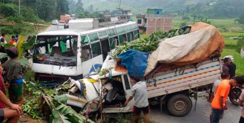तनहुँमा जीप र बस एकापसमा ठोकिँदा चालकको मृत्यु भएको छ। म्याग्दे गाउँपालिका-१ तल्लो गुणादीस्थित पृथ्वीराजमार्गमा नवलपरासीबाट पोखरा जाँदै गरेको लु १ च ७०४१ नम्बरको केरा बोकेको जीप र पोखराबाट दमौली आउँदै गरेको ग १ ख ४०२२ नम्बरको बस एकआपसमा ठोक्किँदा जीप चालक घाइते भएका थिए।