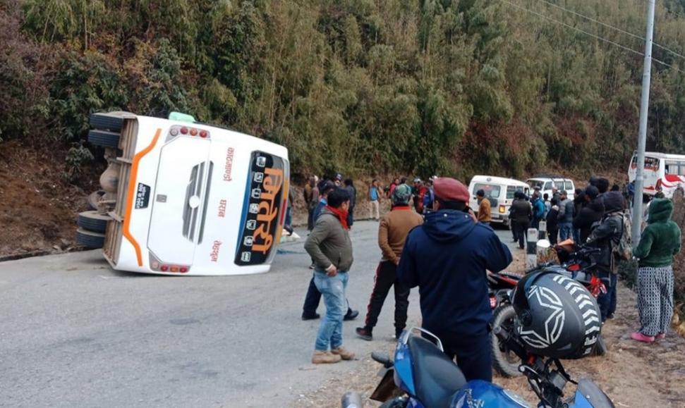 धनकुटाको नुनथलामा यात्रुबाहक बस दुर्घटना