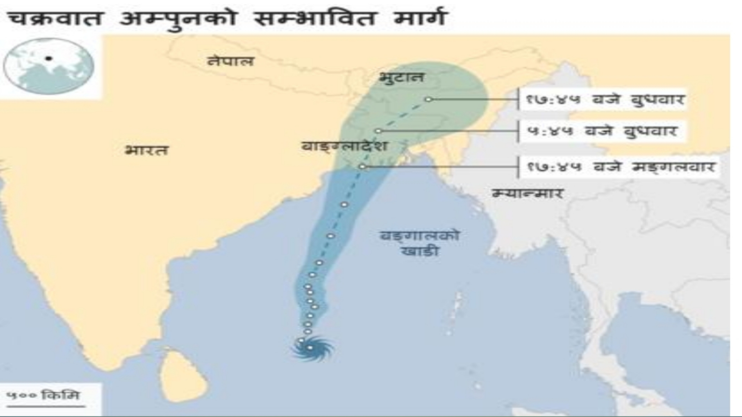 उनीहरूका अनुसार बङ्गालको खाडीबाट उत्पन्न भएको अम्पुन नामक शक्तिशाली चक्रवातले खासगरि नेपालको पूर्वी तथा मध्य भागलाई बढी प्रभावित बनाउनेछ।