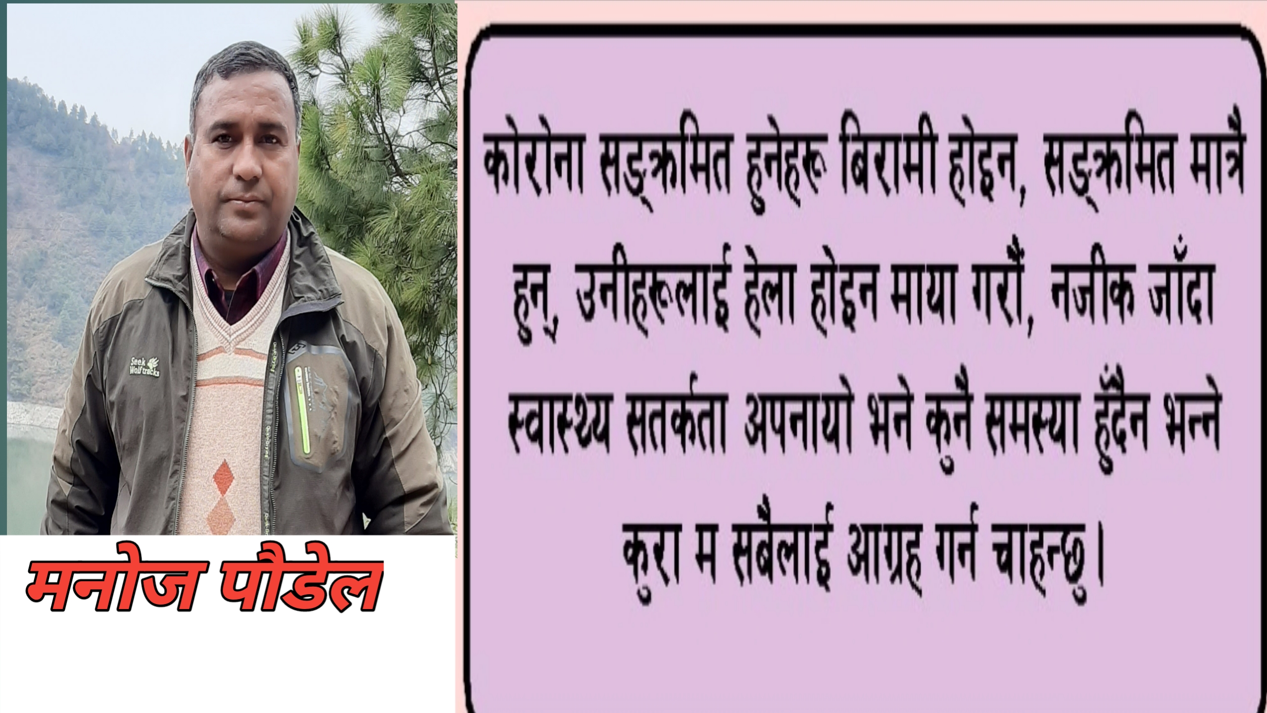 विभिन्न कामको सिलसिलामा जनताको काम र कार्यक्रमहरूमा जाने क्रममा मलाई भाद्र २४ गते कोरोना सङ्क्रमण भयो। त्यस अघि भाद्र १६ गते इलाका प्रहरी कार्यालयमा स्थानीय साथीहरूको मुद्दाको विषयमा र केही जनताको समस्याका विषयमा गएको थिएँ, भाद्र १७ गते म परवानीपुरमा पार्टीको बैठकमा सहभागी भएको थिएँ, १८ गते एकजना बिरामी भएर वीरगंज अस्पतालमा भेट्न गएको थिएँ, १९ गते नेकपा परवानीपुरले आयोजना गरेको रक्तदान कार्यक्रममा सहभागी भएपछि सोही दिन औराहामा श्रद्धाञ्जली कार्यक्रममा समेत सहभागी भइरहँदा मलाई रुघा लागेर असहज महसूस भयो। त्यसपछि घर आएँ भोलिपल्ट पिसिआर गराउने निधो गरें। भाद्र २१ गते मेरो पिसिआर परीक्षणका लागि नमूना सङ्कलन भई २४ गते आएको रिपोर्टमा ममा कोरोना सङ्क्रमण भएको जितन ठाकुरबाट जानकारी पाएँ। त्यस लगत्तै मैले सामाजिक सञ्जालबाट मलाई कोरोना सङ्क्रमण देखिएकोले केही दिन यता मेरो सम्पर्कमा रहका व्यक्तिहरूलाई स्वास्थ्य सतर्कता अँगाल्न आग्रह गरें। त्यसलगत्तै मलाई फोन, म्यासेन्जर र सामाजिक सञ्जालबाट मेरा आफन्तजन मित्रहरू र म सम्बद्व पार्टीका नेता तथा कार्यकर्ताहरूले स्वास्थ्यलाभको कामना गरे। मलाई लागिरहेको थियो म सङ्क्रमित भएपछि मेरो घरमा कोही आउँदैन होला, सबै मुख फर्काएर हिंड्छन् होला, तर त्यस्तो भएन।