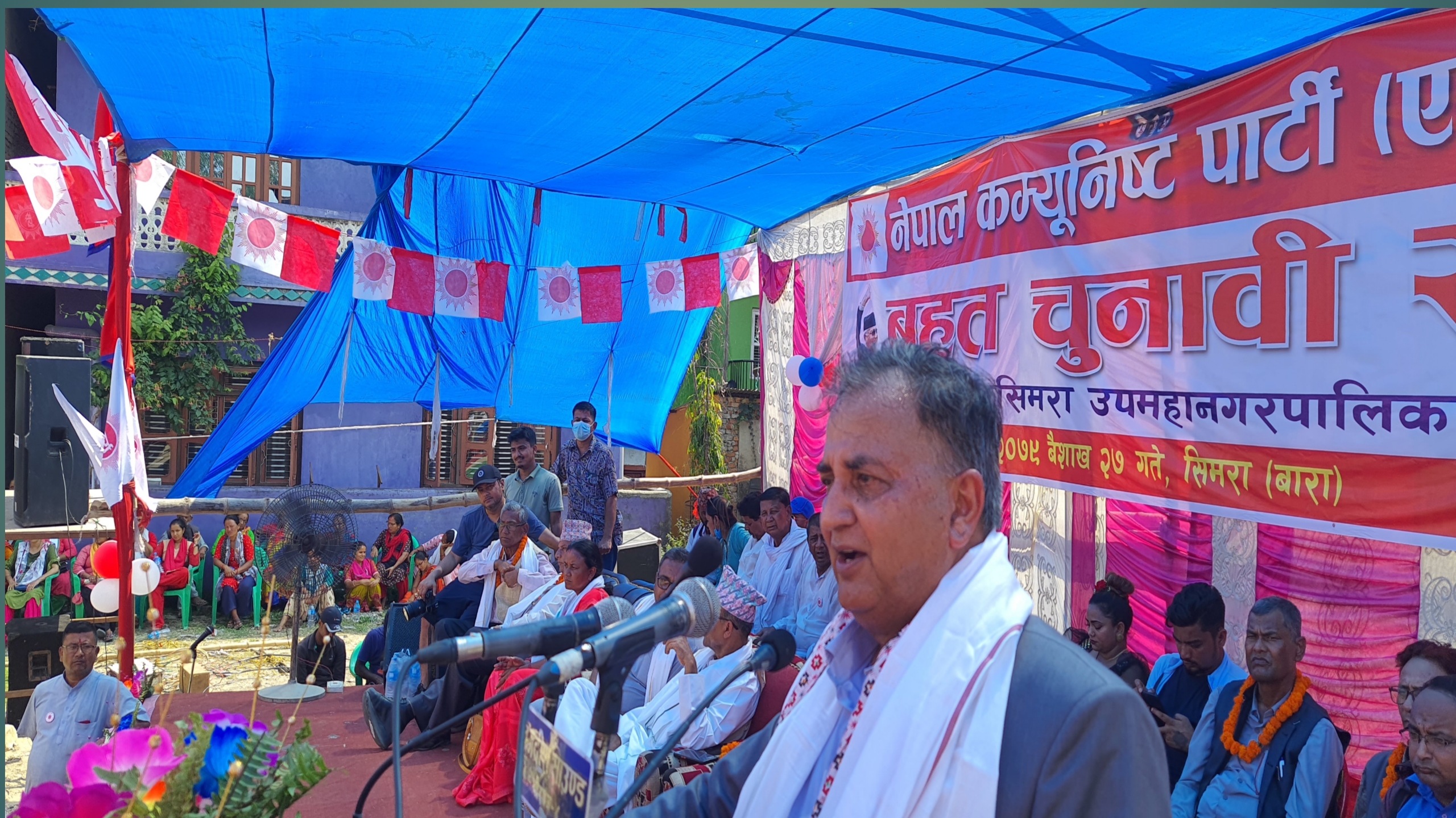 नेकपा एमाले जीतपुरसिमरा उपमहानगरपालिका निर्वाचन परिचालन कमिटिको आयोजनामा बाराको सिमरामा बृहत चुनावी सभा सम्पन्न भएको छ । बैशाख ३० गते हुँने निर्वाचनलाई लक्षित गरेर नेकपा एमालेले जीतपुरसिमरामा आफ्नों शक्ति प्रदर्शन गरेको हो । चुनावी सभालाई सम्बोधन गर्दै नेकपा एमालेका केन्द्रिय उपाध्यक्ष इश्वर पोखरेलले गरिब हुँनै नसक्ने हाम्रो देश राजनितिक अस्थिरताका कारण मुलुक डुबिरहेको बताएका छन् । छिनछिन मैं सरकार बदलिनुका कारण बिकास निर्माणका कामहरु अवरुद्ध भएको नेता पोखरेलले बताएका हुँन् । नेकपा एमाले सँधै जनताको लागि काम गर्ने पार्टी भएको बताउँदै उहाँले एमाले मात्रै मुलुकलाई निकास दिन सक्ने बताए । उनले नेकपा एमालेबाट यस नगरमा उम्मेदावरी दिने पहिलो महिला मेयर उम्मेदवार सरस्वतीदेवी चौधरी लगायत सम्पूर्ण टिमलाई भारी मतले विजयी गराउँनु अनुरोध समेत गरे । उपाध्यक्ष पोखरेलले बैशाख ३० गते पछि देशमा लागेको लुतो पखालिएर जाने दाबी समेत गर्नु भयो । उहाले जनताले परमादेशी गठबन्धनलाई ठेगान लगाउने समेत ठोकुवा गर्नु भयो । कार्यक्रममा नेकपा एमालेका पोलिटब्युरो सदस्य पुरुषोत्तम पौडेल, ज्वाला कुमारी साह, मधेश प्रदेश कमिटि सदस्य देव नारायण चौधरी, नगर प्रमुख पदकी उमेदवार सरस्वती देवी चौधरी, उपप्रमुख पदका उमेदवार भोला प्रसाद अधिकारी लगायतले सम्बोधन गरेका थिए । निर्वाचन परिचालन कमिटिका संयोजक मनोज पौडेललेको सभापतित्वमा सम्पन्न कार्यक्रमको सञ्चालन नगर सचिव रत्न उप्रेतीको रहेको थियो ।