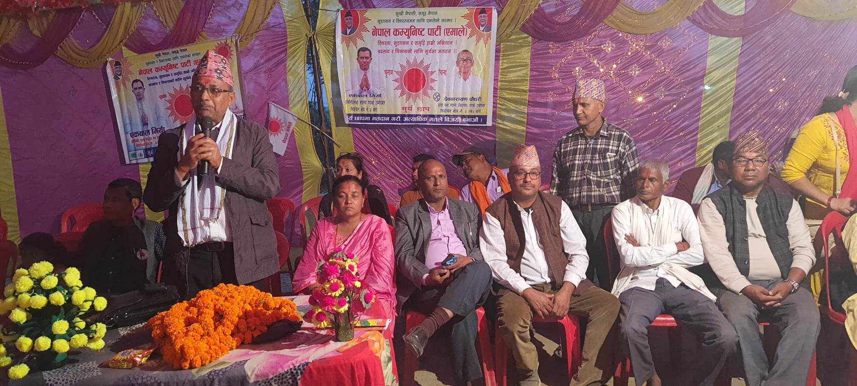 कार्यक्रमलाई सम्बोधन गर्दै प्रमुख अतिथि पौडेलले समृद्ध नेपाल, सुखी नेपालीको राष्ट्रिय आकांक्षा पुरा गर्न नेकपा एमाले नेतृत्वको सरकार नै आवश्यक रहेको र बारा ४ मा एकबाल मियाँ र ४ (क) मा देव नारायण चौधरीलाई जिताए मात्र संघ र प्रदेशमा एमालेको सरकार बन्ने बताउनु भयो।