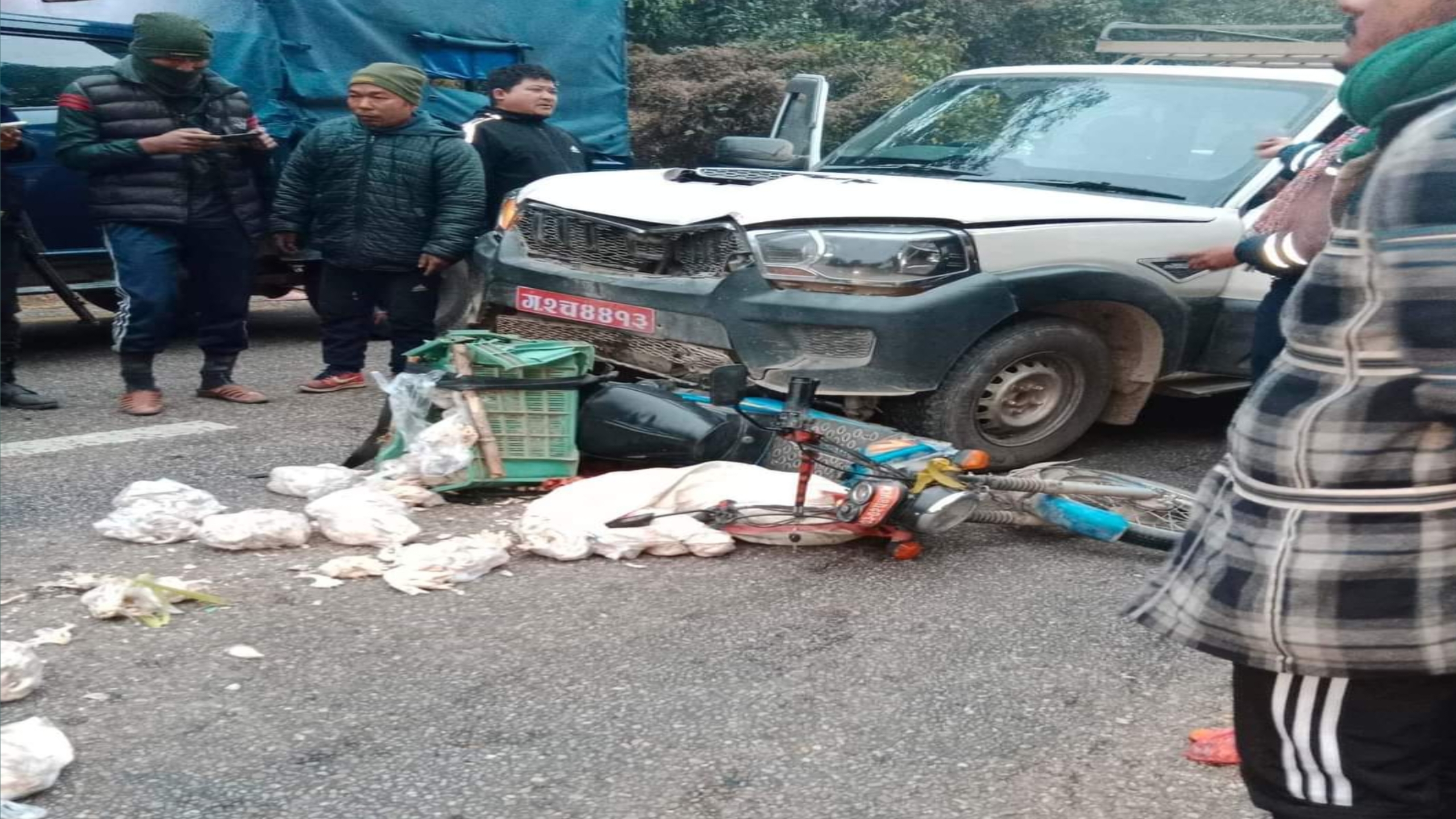 पुर्वपश्चिम राजमार्ग पसाहा पुलपुर्व १० किलोमा सडक दुर्घटनामा परि एकको मृत्यु भएको छ भने तिन जना घाइते भएका छ्न । निजगढ तर्फबाट अनियंत्रितरुपमा गइरहेको ग २ च ४४१३ नम्बरको स्कार्पिओले पछाडिबाट ठक्कर दिदा टांगियाबस्ती निवासि राजेन्द्र माझिको मृत्युभएको छ भने रुपा आले र सोनिका योन्जनघाइते भएका छ्न । उनिहरु नजिकैको बजारमा मोटरसाइकल मा तरकारी बेच्न जाँदै गर्दा अनियंत्रित गाडिले आज बिहान ठक्कर दिएको हो । गाडिलाइ प्रहरीले नियन्त्रणमा लिएको छ भने घाइते हरुको सिमरामा रहेको अल्पाइन अस्पतालमा उपचार पछि भरतपुर लगिएको छ ।