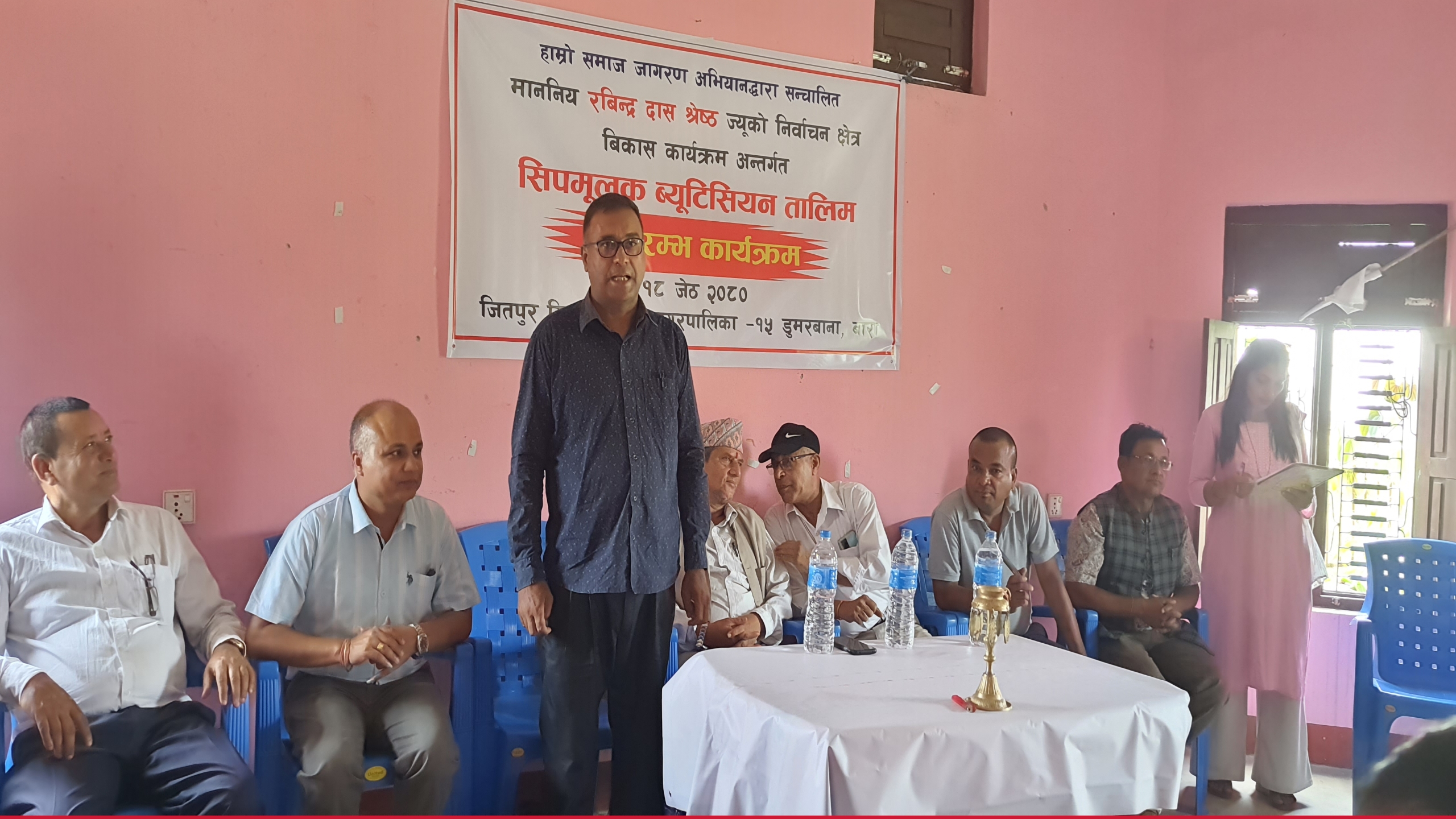 जीतपुरसिमरा उपमहानगरपालिका १५ डुमरवानामा विहिबारदेखि ब्युटिसियन तालिम सुरु भएको छ । मधेस प्रदेशसभा सदस्य रवीन्द्रदास श्रेष्ठको निर्वाचन क्षेत्र विकास कार्यक्रम अन्तर्गत हाम्रो समाज जागरण अभियानले तालिमको आयोजना गरेको हो ।