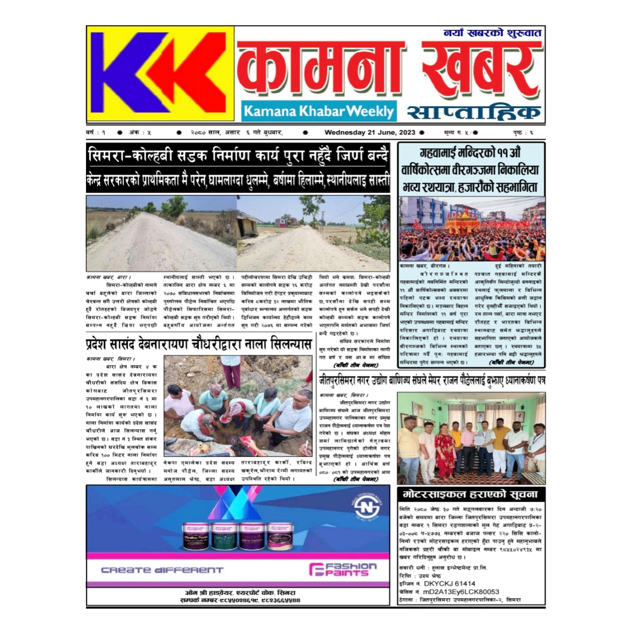 आज २०८० आषाढ ६ गतेको कामना खबर पत्रिका