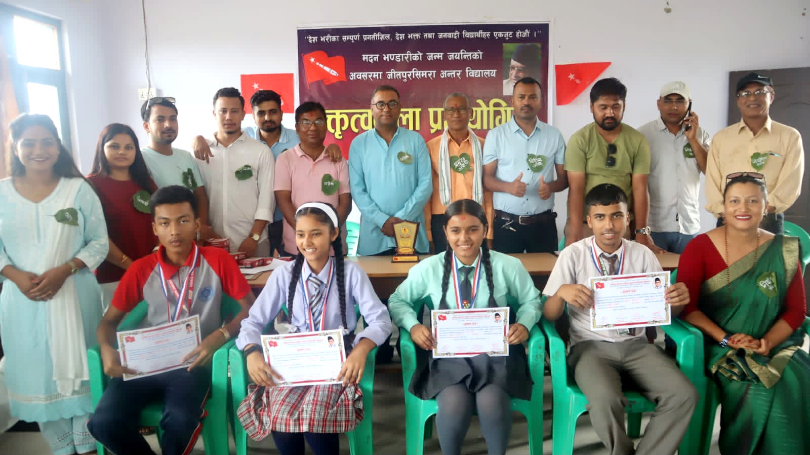 ‘भूराजनिति र नेपाल’ बिषयमा जीतपुरसिमरा उपमहानगरका ७ बिद्यालयका बिद्यार्थीहरूले आफ्नो मन्तव्य प्रस्तुत गरेका थिए । कार्यक्रममा नेरामाबि सिमराकी छात्रा अनुशा लामिछाने प्रथम भएकी छिन् । लामिछानेले नगद १० हजार, मेडल र प्रमाणपत्र प्राप्त गरीन् ।