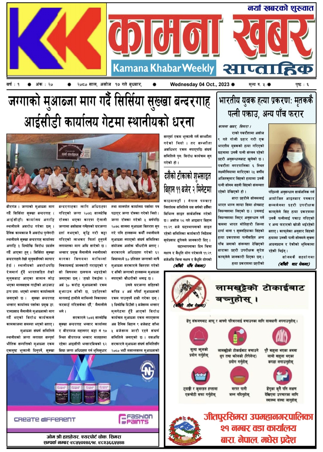 २०८० असोज १७ गते बुधबारको कामना खबर पत्रिका
