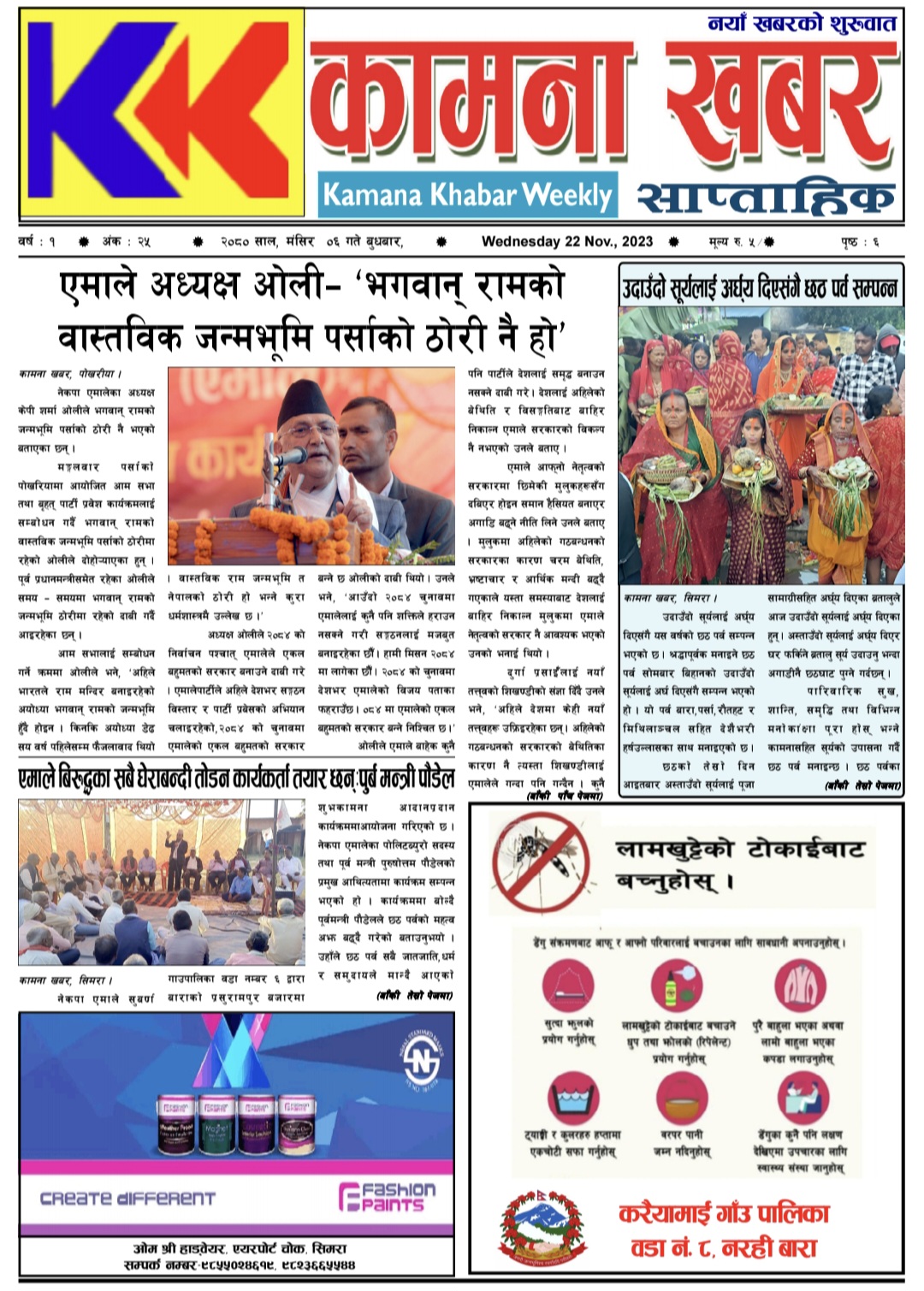 २०८० मंसिर ६ गतेको कामना खबर पत्रिका