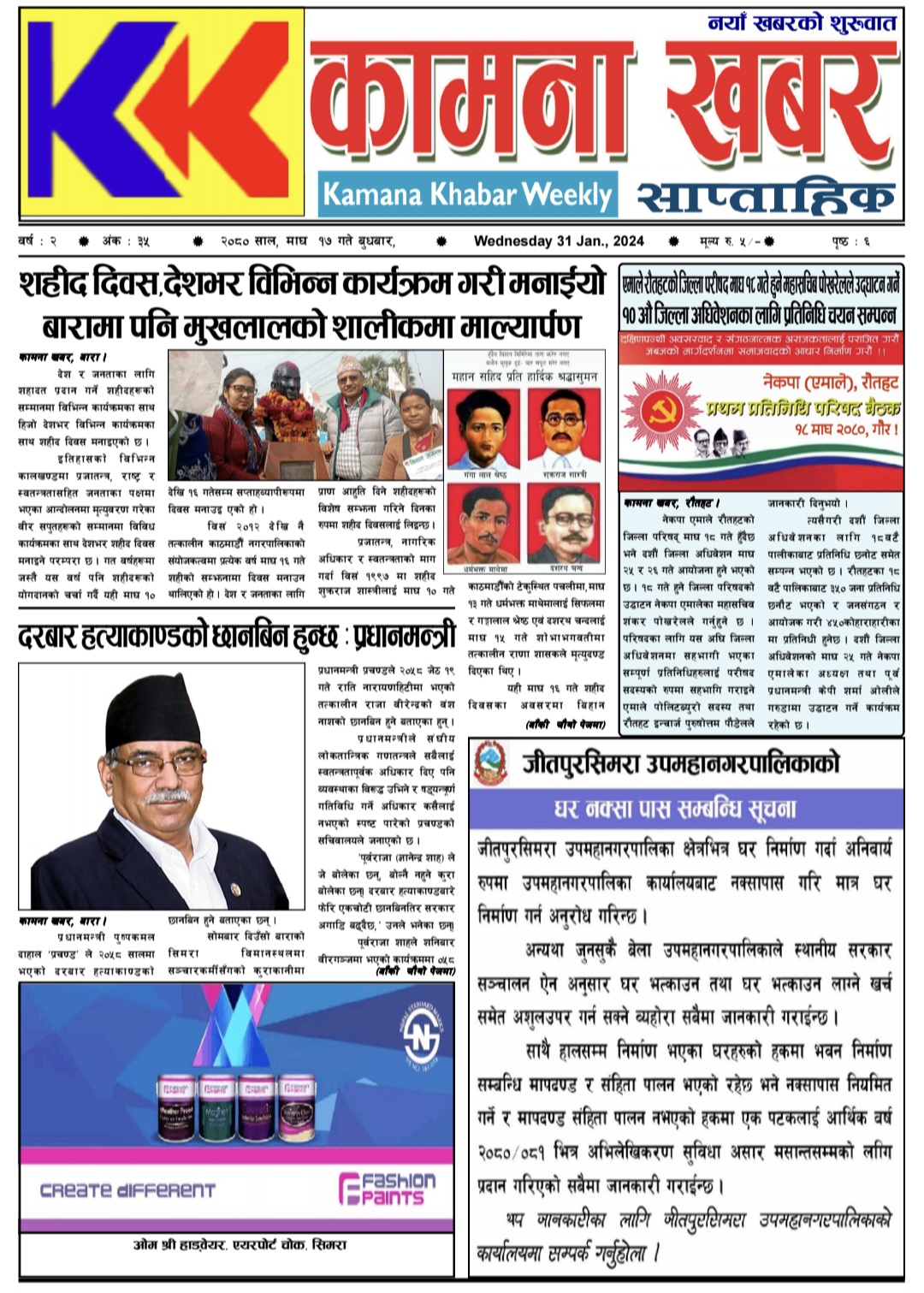 २०८० माघ १७ गतेको कामना खबर पत्रिका