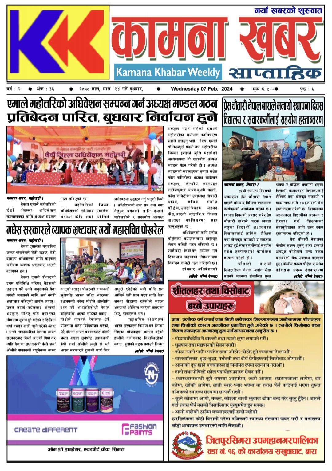 २०८० माघ २४ गतेको कामना खबर पत्रीका