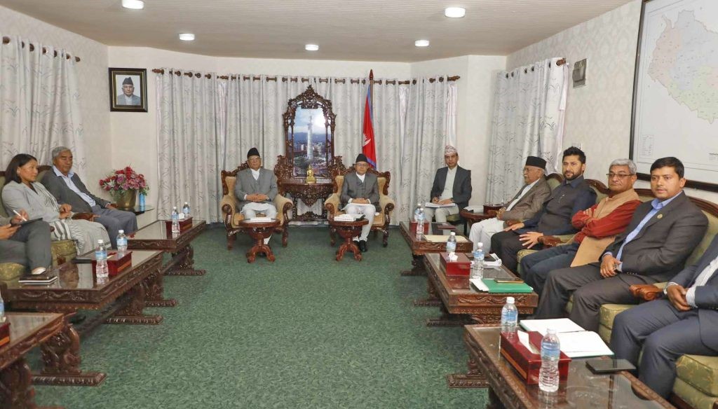 सिंहदरबारस्थित सभामुखको कार्यकक्षमा सुरु भएको बैठकमा प्रधानमन्त्री पुष्पकमल दाहाल प्रचण्ड, नेपाली कांग्रेसका सभापति शेरबहादुर देउवा, नेकपा एमालेका अध्यक्ष केपी शर्मा ओली, उपप्रधानमन्त्री तथा गृहमन्त्री रवि लामिछानेलगायत सहभागी छन् ।
