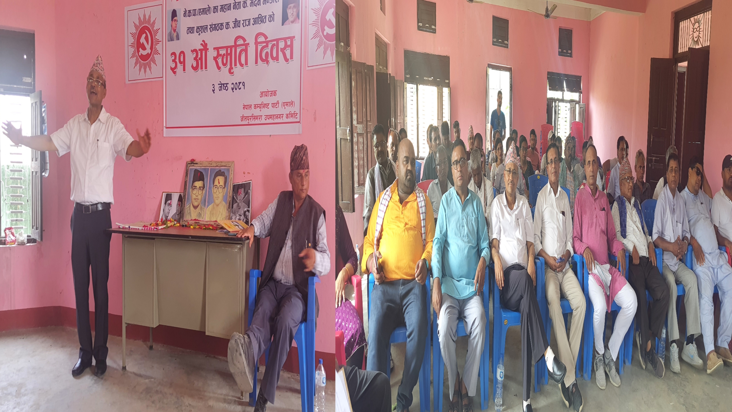 कार्यक्रममा नेकपा एमाले मधेस प्रदेश कमिटीका सचिव मनोज पौडेल, प्रदेश कमिटीकासदस्यहरू सुन्दर बिक, किशोर शर्मा, चयन गुरुङ जिल्ला कमिटी उपसचिव भावना आचार्य लगायतले श्रद्धासुमन अर्पण गर्नुभएको थियो जितपुरसिमरा उपमहानगर कमिटीका अध्यक्ष भोलाप्रसाद अधिकारीको सभापतित्वमा सम्पन्न कार्यक्रमको सहजीकरण त्रिलोक विक्रम ठाकुरिले गर्नुभएको थियो भने स्वागत झापेन्द्र बरालले गर्नुभएको थियो।