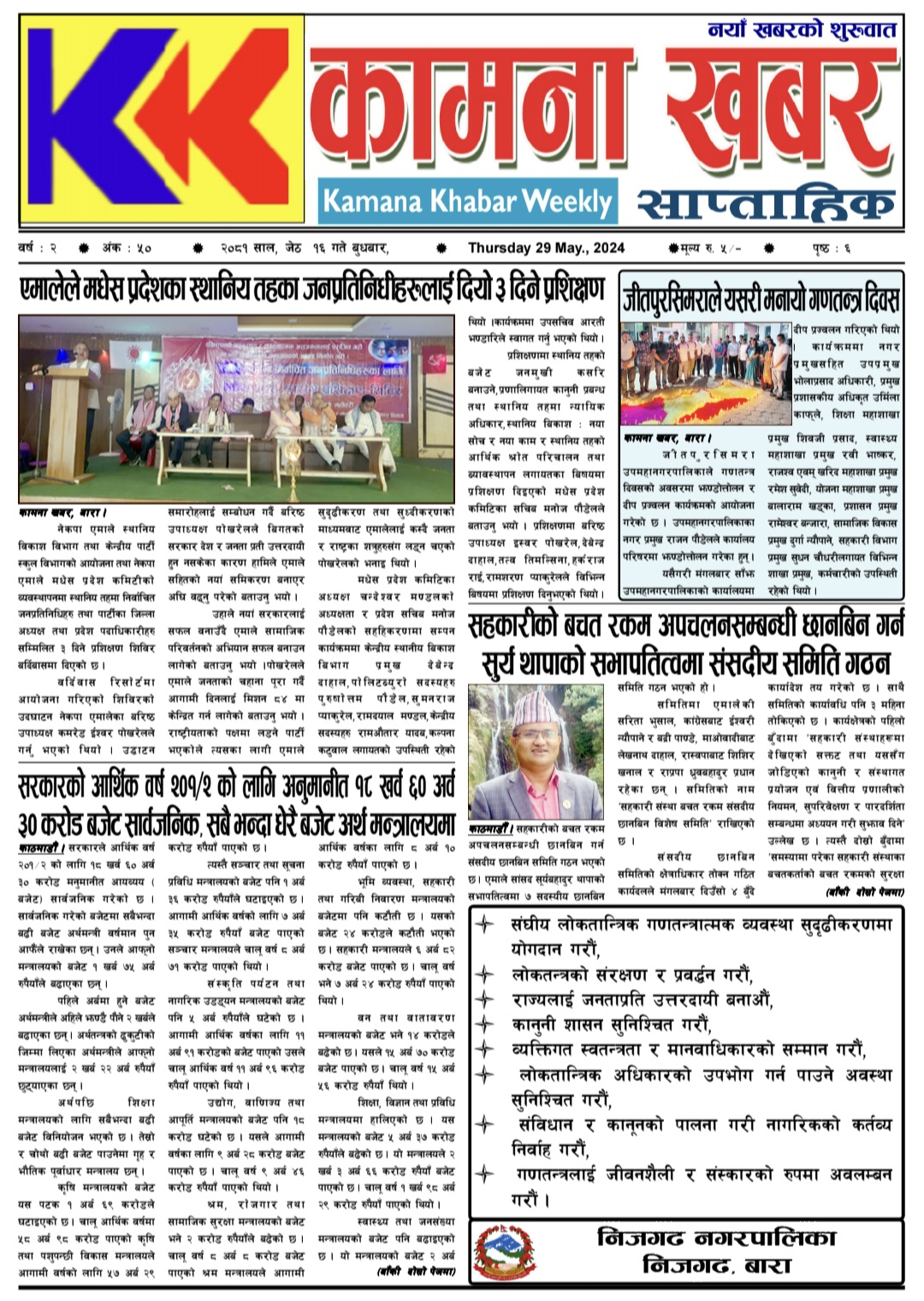 २०८१ जेष्ठ १६ गते बुधबारको कामना खबर पत्रिका