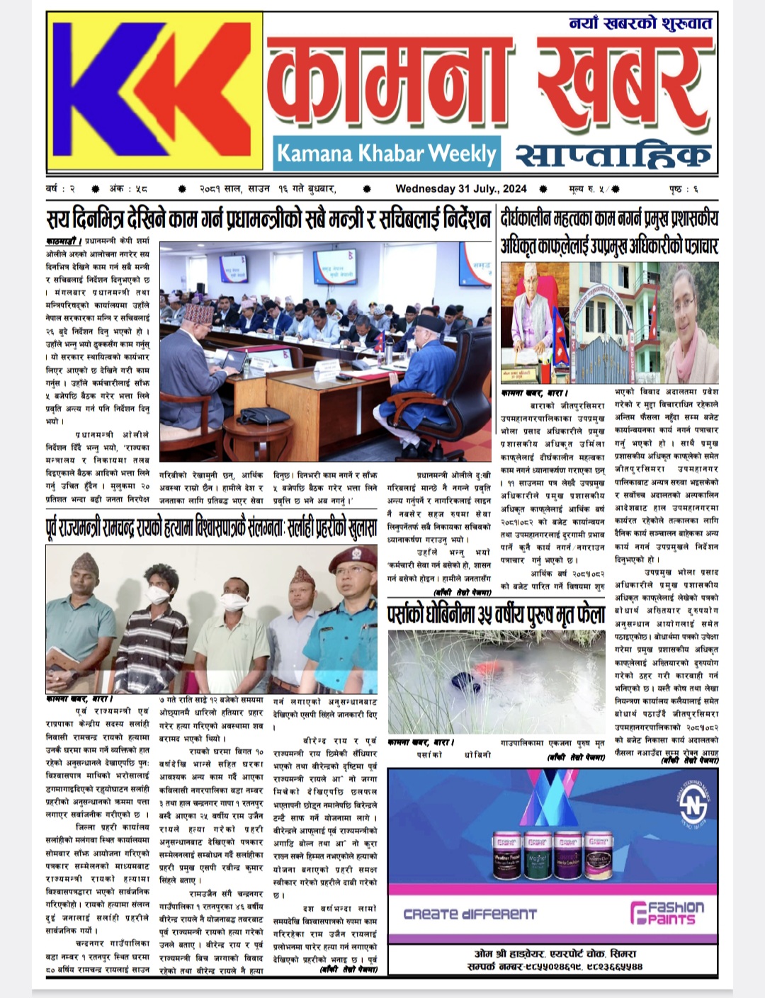 २०८१ श्रावण १६ गतेको कामना खबर पत्रिका