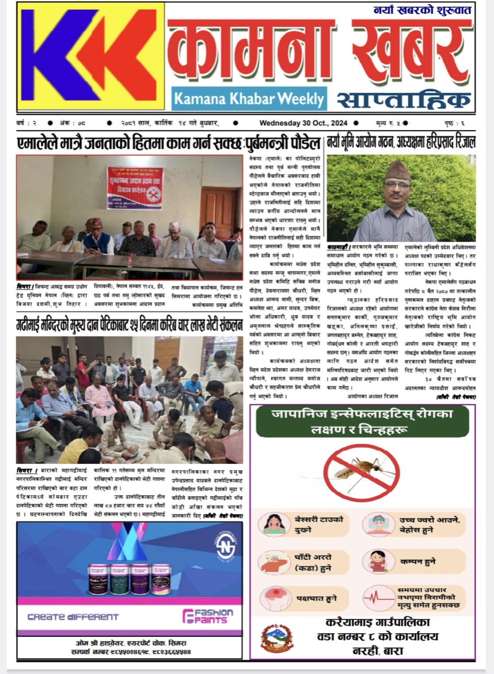 २०८१ कार्तीक १४ गते बुधबारको कामना खबर पत्रिका