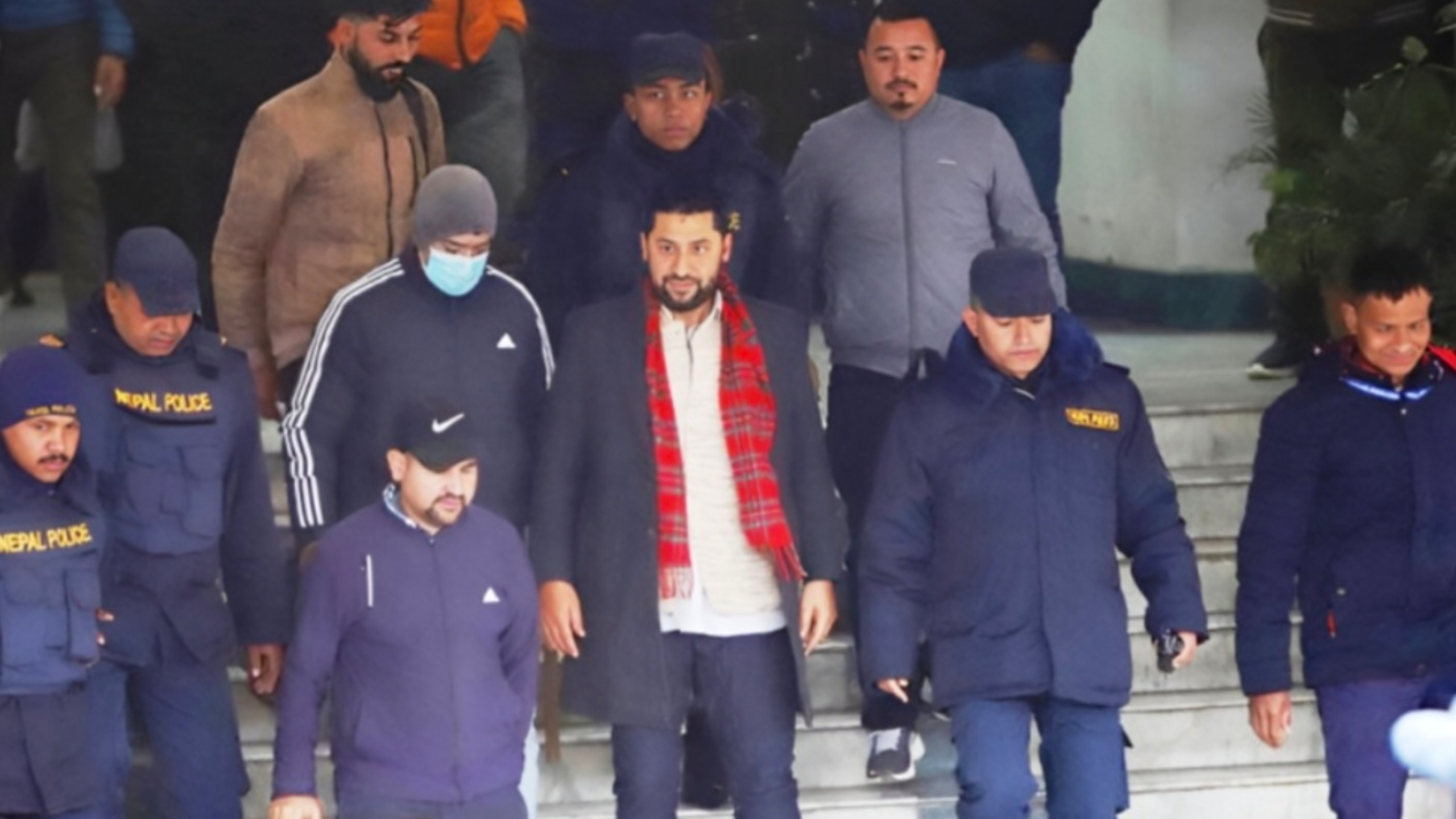 अदालतको ढोकाबाट सलाम गर्दै रवि बाहिर निस्किएका छन् ।