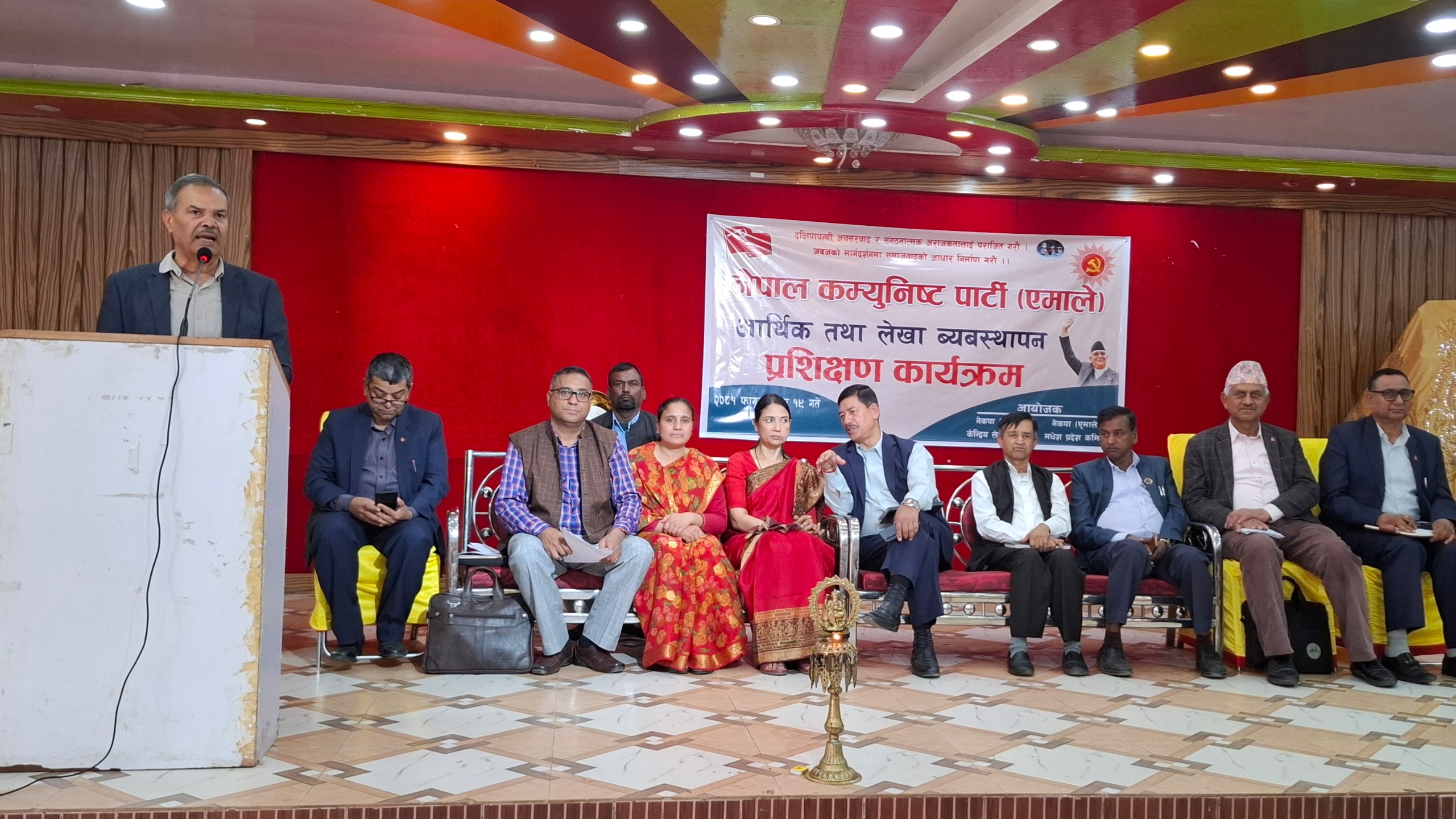पार्टिको आर्थिक पाटो पार्दर्शि बनाउन,पार्टी कमिटीलाई आर्थिकरुपमा अनुशासित,ब्यवस्थित,चुस्तदुरुस्त बनाउनुका साथै लेखा प्रणाली अन्तर्गत नेता कार्यकर्तालाई हरहिसाब राख्नसक्ने बनाउनको लागि प्रशिक्षण कार्यक्रमको आयोजना गरिएको एमाले मधेश प्रदेश कमिटीका सचिव मनोज पौडेलले जानकारी दिनु भयो। एमाले केन्द्रिय लेखा आयोग र मधेस प्रदेश कमिटीको संयुक्त आयोजनामा आर्थिक तथा लेखा ब्यबस्थापन प्रशिक्षण कार्यक्रम २ दिन सम्म जनकपुरमा चल्ने छ । प्रशिक्षण कार्यक्रमको उद्घघाटन केन्द्रिय लेखा आयोगका अध्यक्ष डा पुष्प कंडेलले गर्नु भएको थियो । कार्यक्रममा एमाले मधेश प्रदेश कमिटीका इन्चार्ज लिलानाथ श्रेष्ठले कार्यक्रम सफलताको शुभकामना दिनु भएको थियो ।