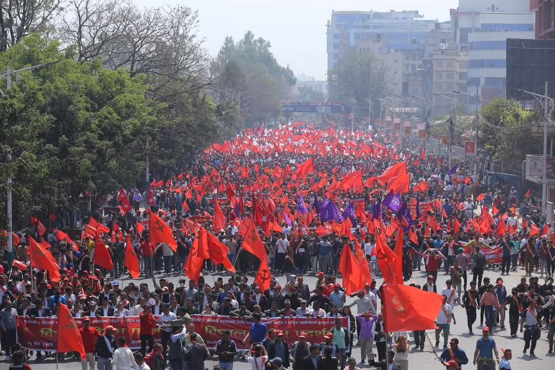 काठमाडौंमा गणतन्त्र पक्षधरको प्रदर्शन जारी छ । उपत्यकाका विभिन्न क्षेत्रबाट जुलुस निकाल्दै अहिले भृकुटीमण्डपतर्फ अघि बढेका छन् ।