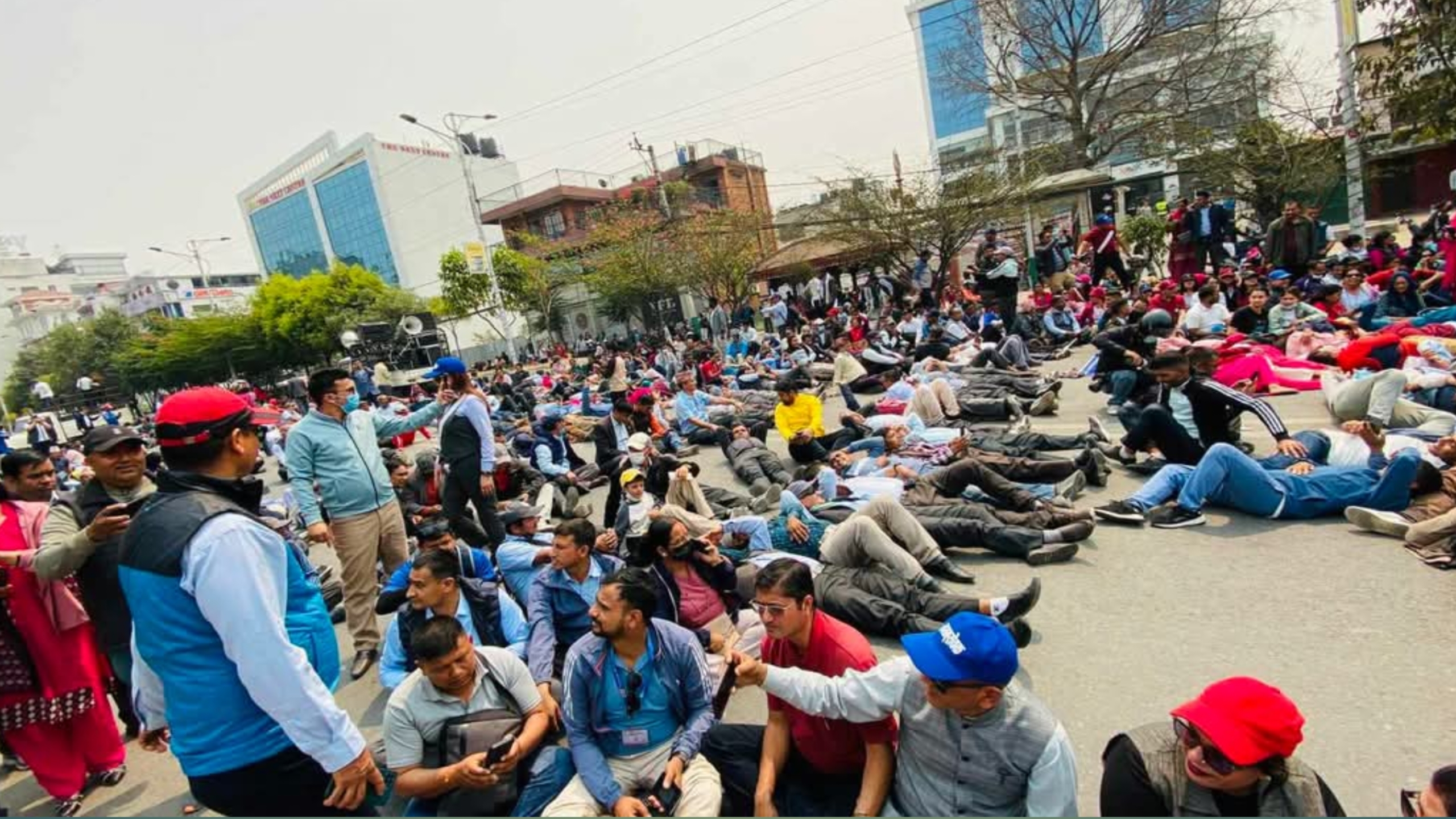 केही दिनदेखि बबरमहल-नयाँ बानेश्वर सडकमा नारा-जुलुससहित प्रदर्शन गरिएका शिक्षकहरूले आज आधा घण्टा सुतेर प्रदर्शन गरेका हुन् ।