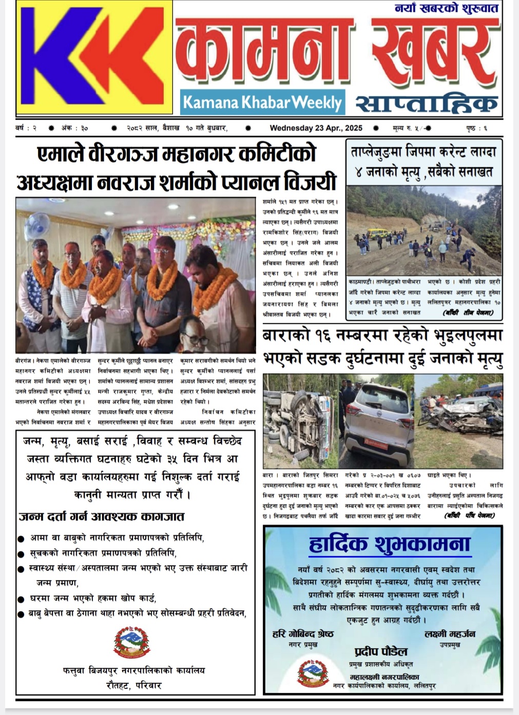 २०८१ साल बैशाख १० गते बुधबारको कामना खबर पत्रिका
