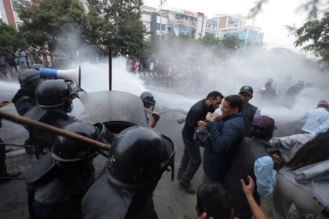 प्रहरीको तर्फबाट लाठी र पानीको फोहोरा प्रहार भएपछि शिक्षकहरूले समेत ढुंगा प्रहार गरेका थिए ।