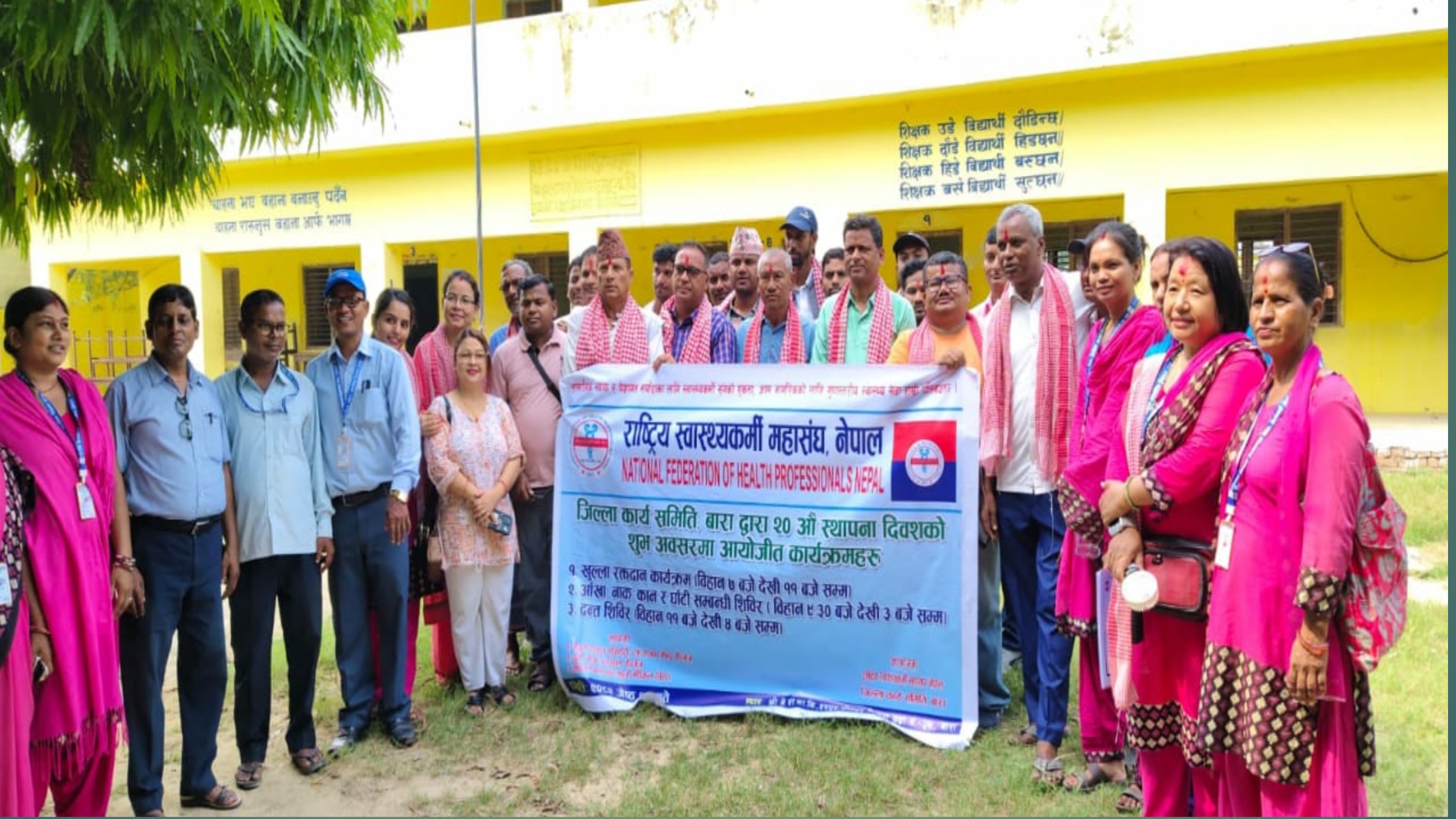 नेकपा एमाले निकट राष्ट्रिय स्वास्थ्यकर्मी महासङ्घ नेपाल को २० औ स्थापना दिवसको अवसरमा स्वास्थ्यकर्मी महासङ्घ जिल्ला कमिटी बाराले रक्तदान तथा स्वास्थ्य शिविरको आयोजना गरेको छ।