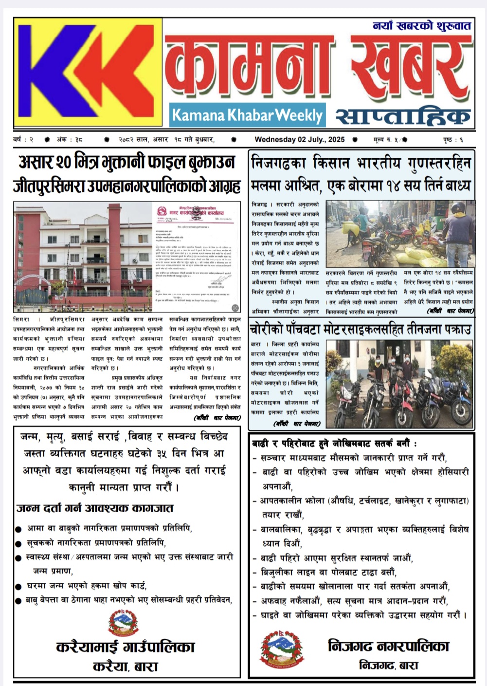 २०८२ साल असार १८ गते बुधबारको कामना खबर पत्रिका