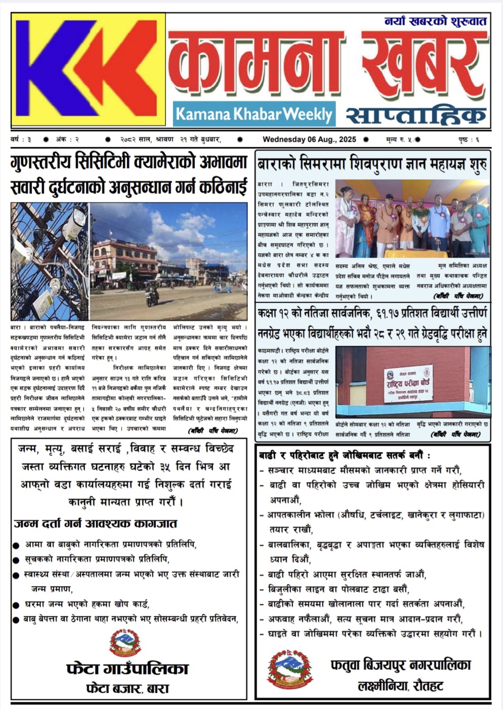 २०८२ श्रावण २१ गते बुधबारको कामना खबर पत्रिका