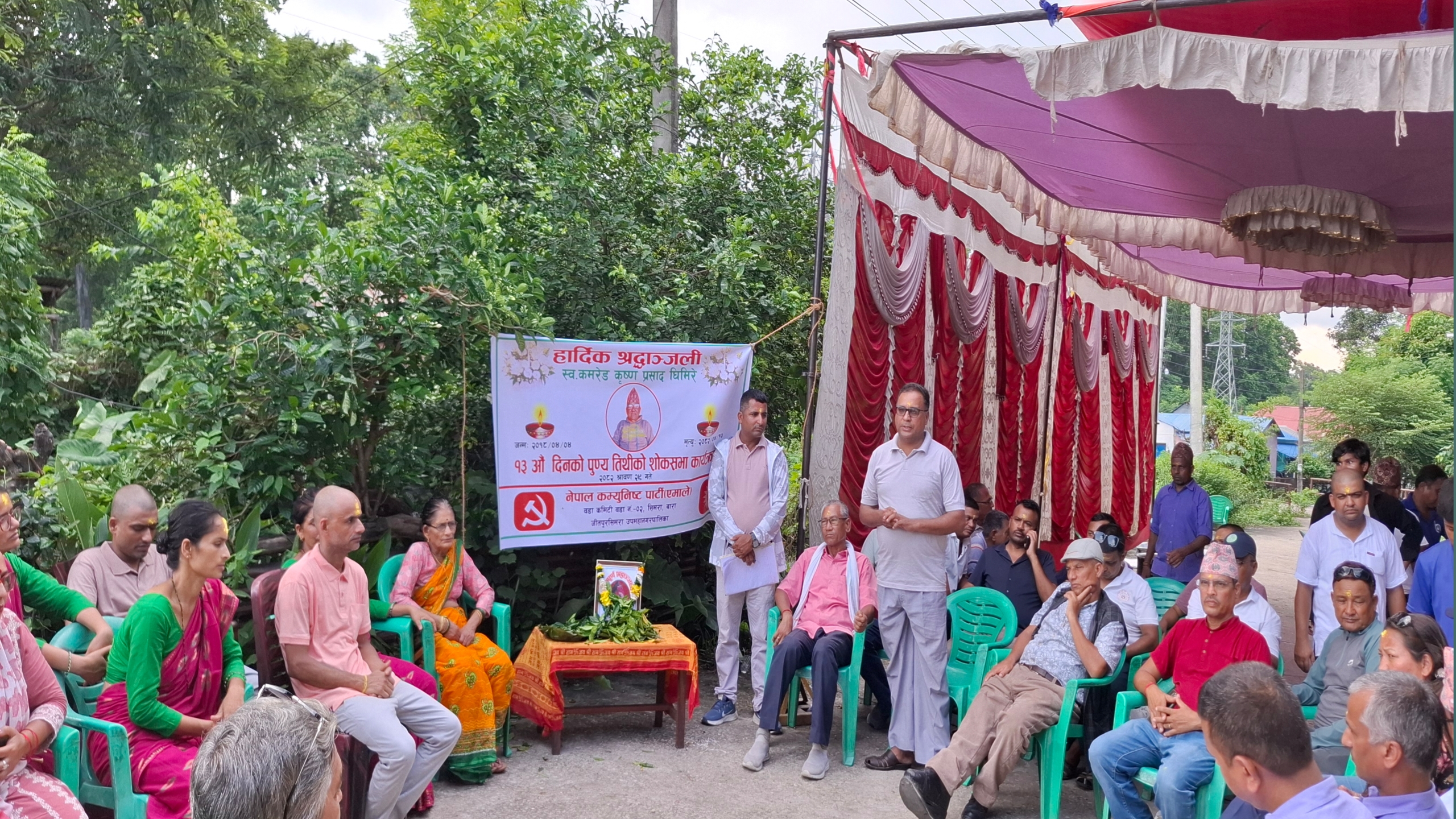 जितपुरसिमरा उपमहानगरपालिका वडा न.२ निवासी नेकपा एमाले का नेता समाजिक ब्याक्ती स्व . कमरेड कृष्ण प्रसाद घिमिरे को आज १३ औं दिनको पुन्यतिथिको शोक सभा तथा श्रद्धाञ्जली सभा आज सम्पन्न भएको छ ।