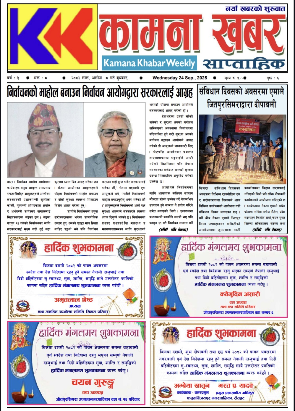२०८२ साल असोज ८ गते बुधबारको कामना खबर पत्रिका