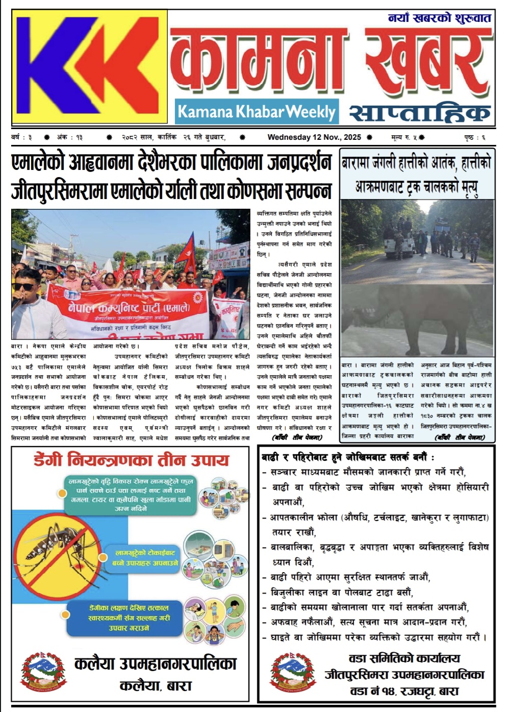 २०८२ कार्तीक २६ गते बुधबारको कामना खबर पत्रिका