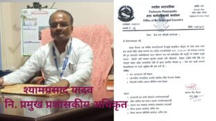 बारा ३ श्रावण : पचरौता नगरपालिकाका प्रमुख प्रशासकीय अधिकृत श्यामप्रसाद थप यता