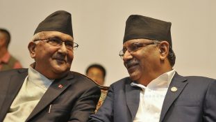 प्रधानमन्त्री एवम् नेकपा अध्यक्ष केपी शर्मा ओली र अर्का अध्यक्ष पुष्पकमल थप यता