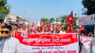बारा २५ कार्तिक : नेकपा एमाले केन्द्रीय कमिटीको आह्वानमा मुलुकभरका ७५३ वटै थप यता